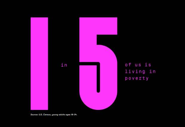 Автор подкрепляет текст слайдером с броской статистикой: каждый пятый миллениал в Америке живет в бедности